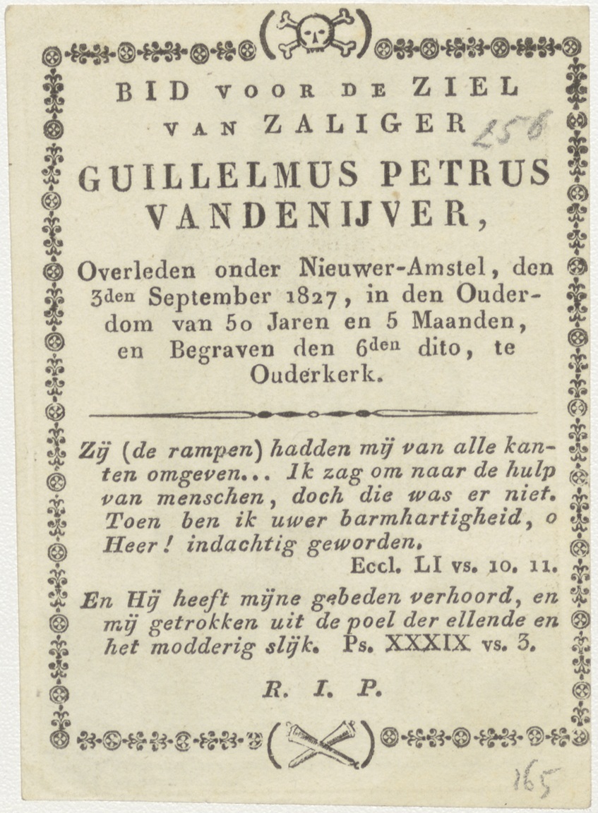 H. Godefridus praemonstratenser, kz. Bid voor ziel Guillelmus Petrus van den IJver (+1827);Nieuw Amstel