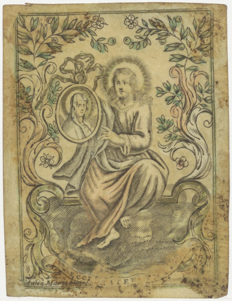 Ecce Mater tua Christus met afbeelding van Maria, ingekleurd