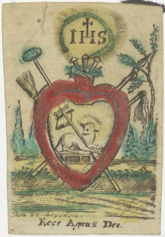 Zinnebeeldig Hart met Lam Gods, ingekleurd