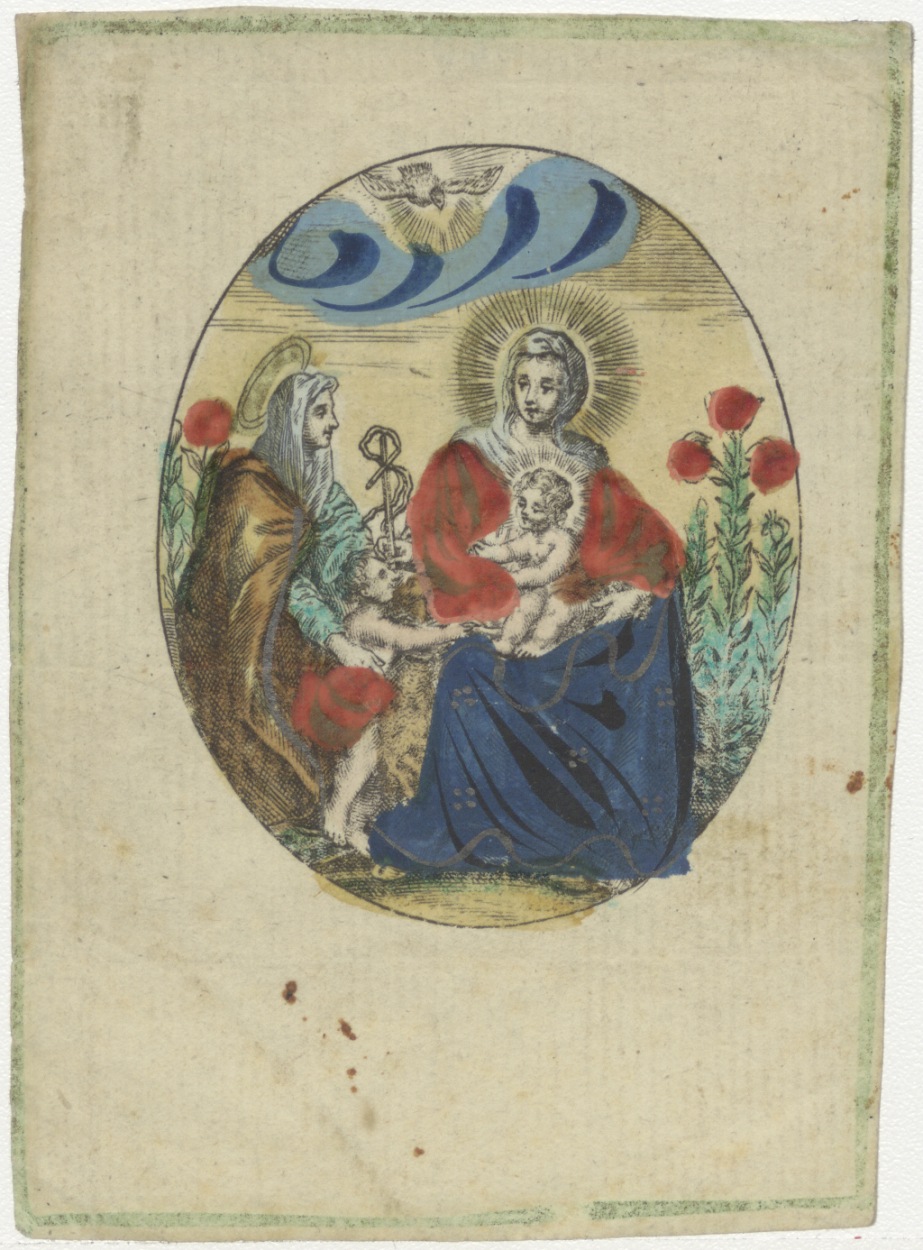 Maria met Christuskind, Elisabeth en Johannes, ingekleurd