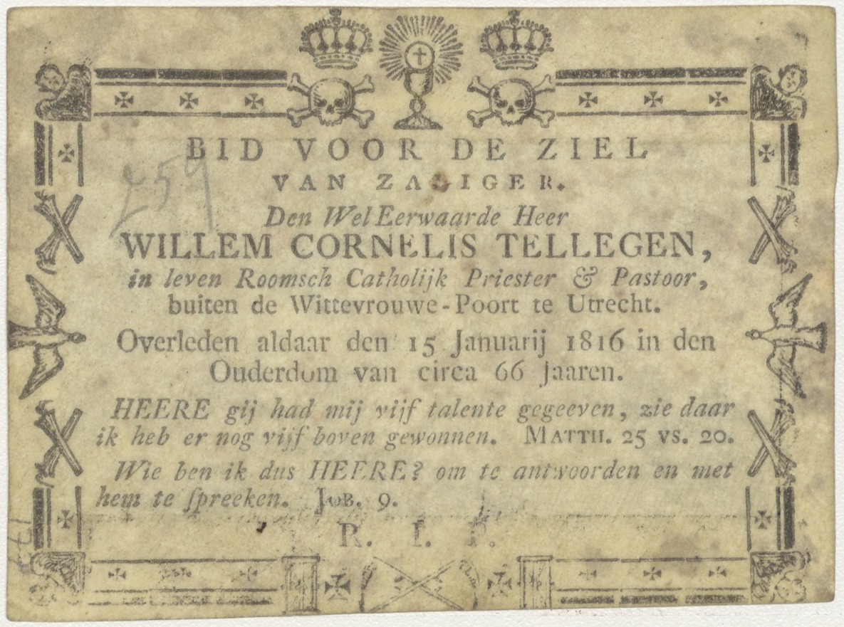Nederdaling van de H. Geest, pinksteren, kz. Religieus;Bid voor ziel Willem Cornelis Tellegen (+1816);pastoor;Utrecht