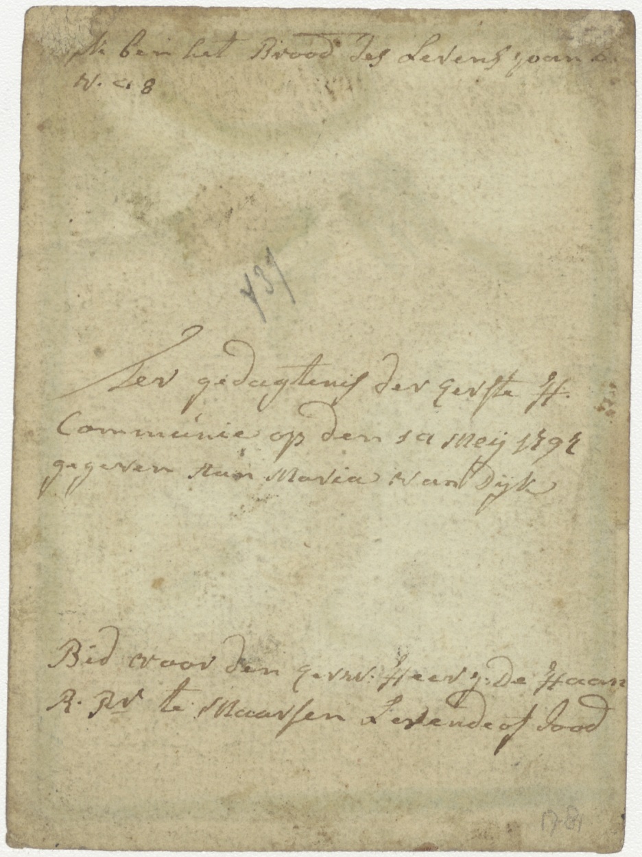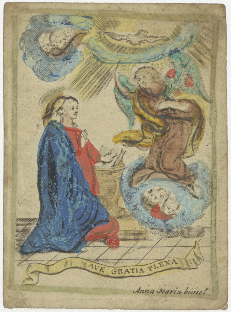 Annunciatie, Maria boodschap, ingekleurd, kz. H. Communie Van Dijk;1797
