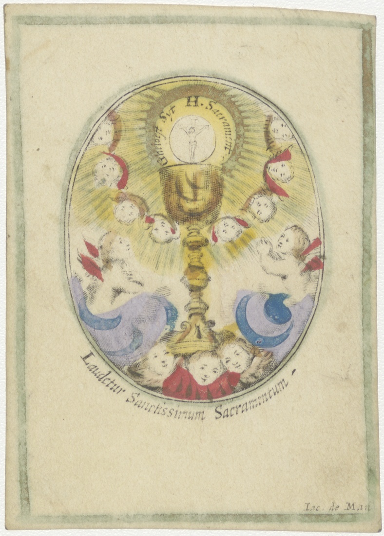 Aanbidding van het H. Sacrament in kelk, ingekleurd