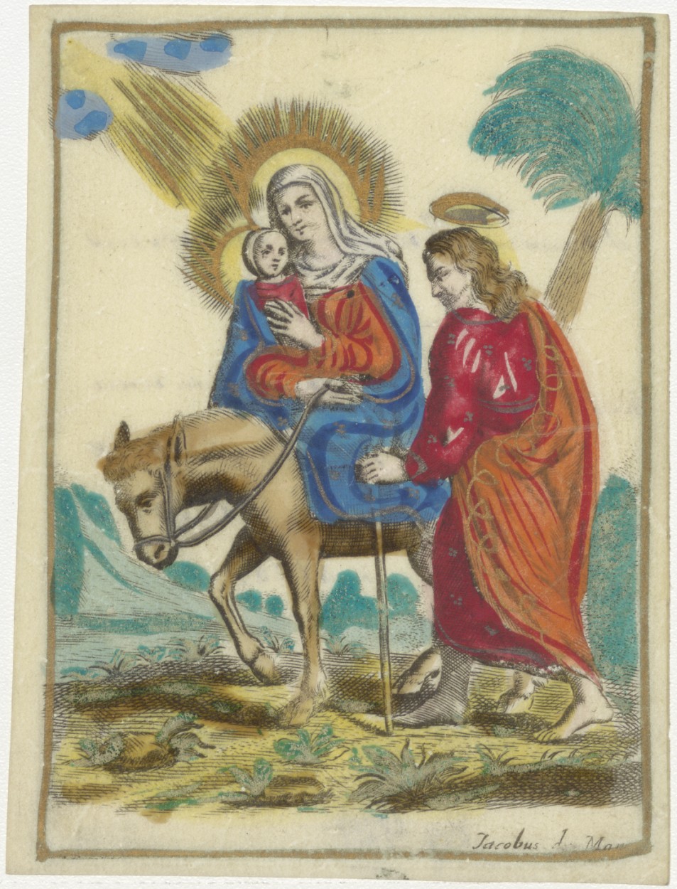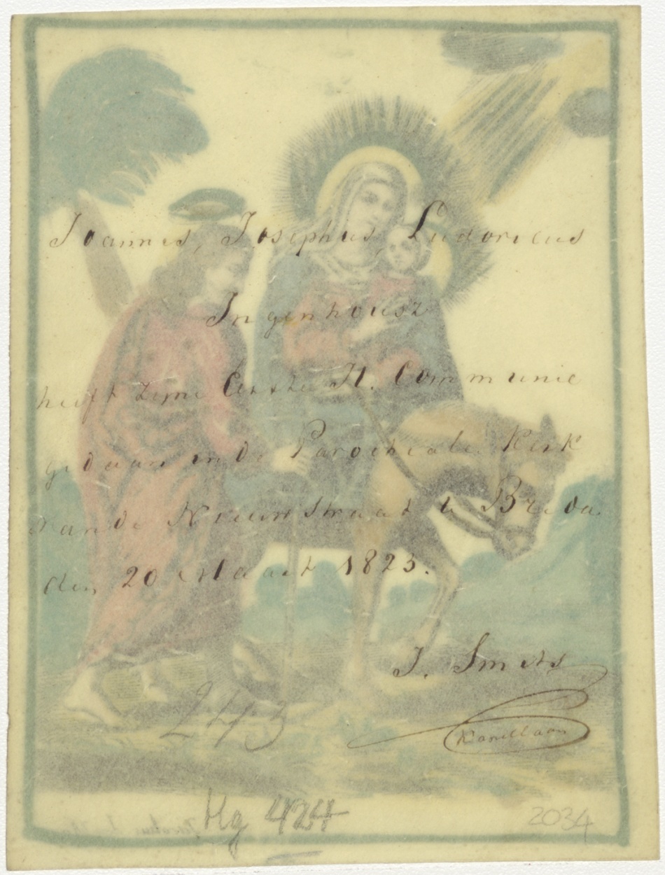 Vlucht naar Egypte, ingekleurd, kz. H. Communie Joannes Josephus Ludovicus Ingenhousz;Breda;1823