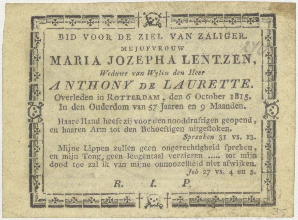 Uw wil geschiede op aarde zoals in den hemel, kz. Bid voor ziel Maria Jozepha Lentzen (+1815);Religieus