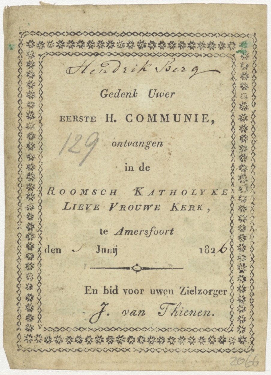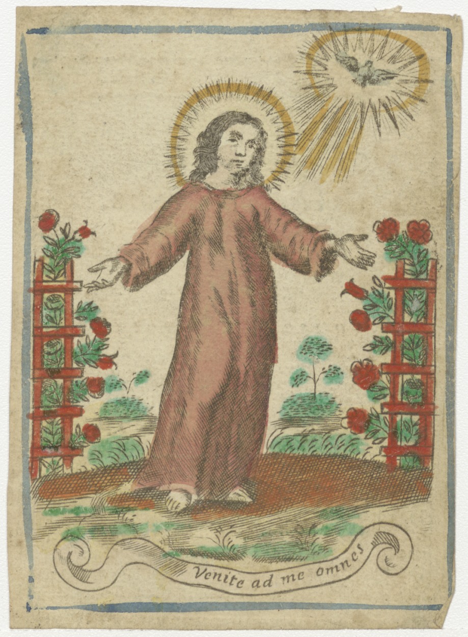 Christusfiguur staande, ingekleurd, kz. H. Communie Berg;Amersfoort;1826