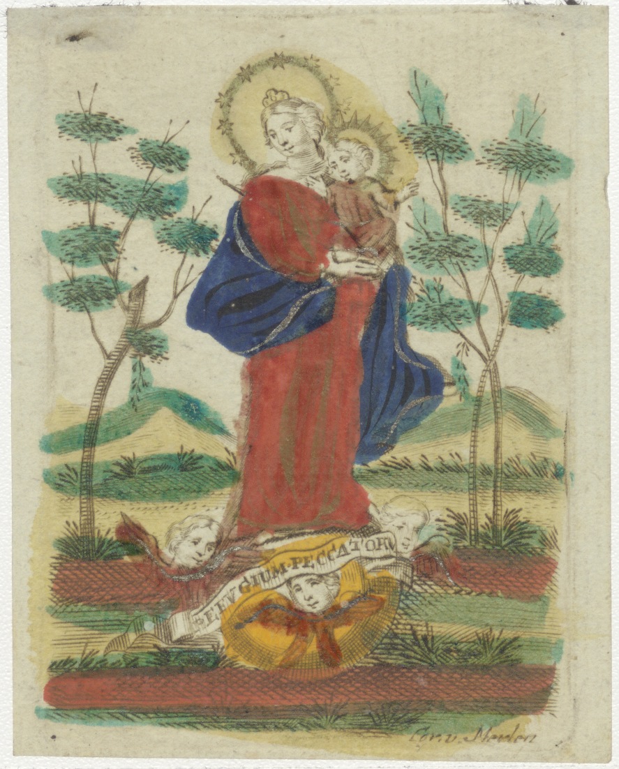 Maria met Christuskind, toevlucht der zondaren, ingekleurd