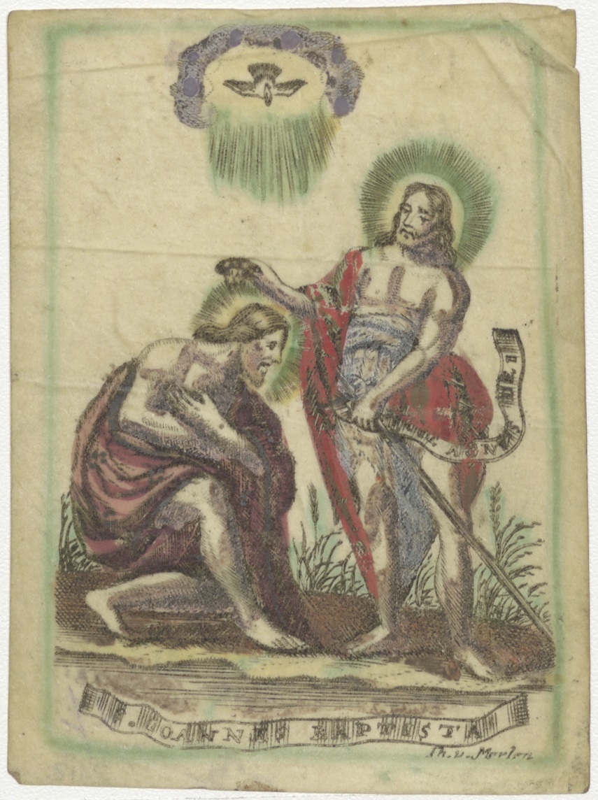 Doop van Christus door Johannes de Doper, ingekleurd