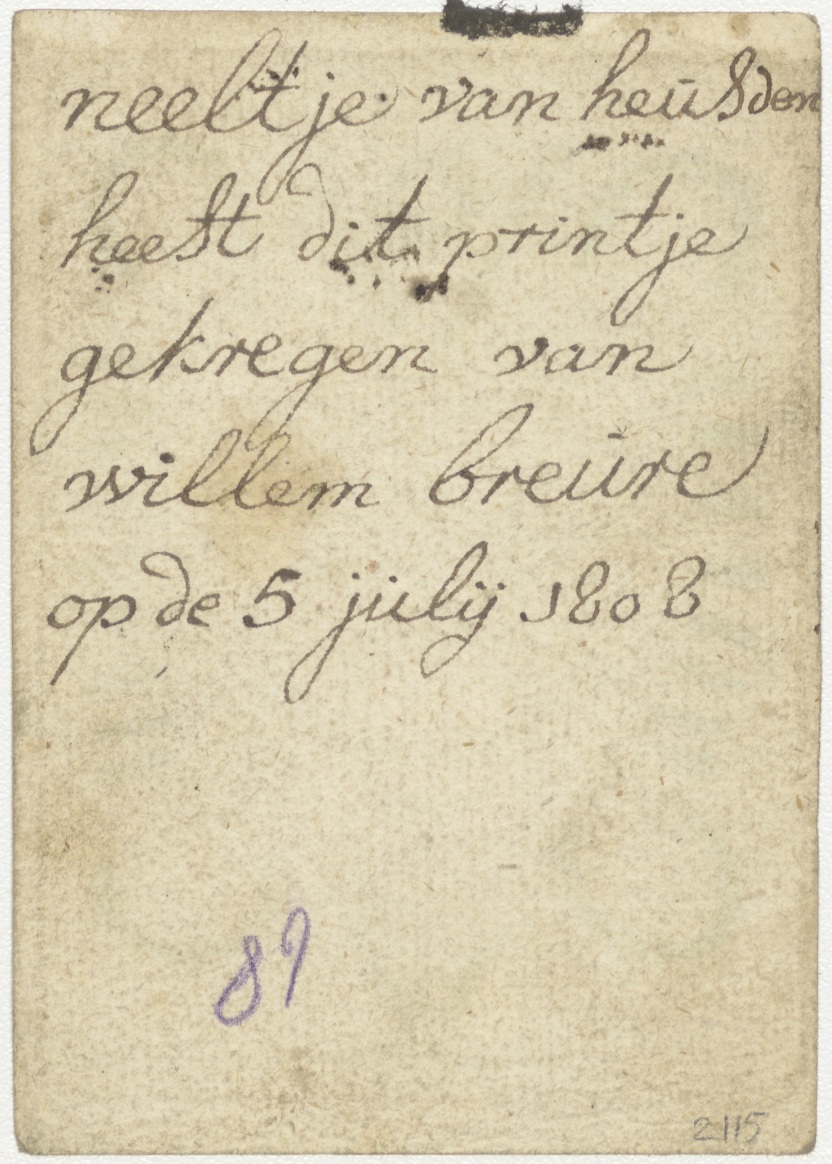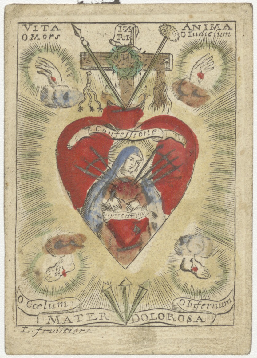 O.L. Vrouw van 7 Weeën, kruis en lijdenswerktuigen, ingekleurd, kz. Neeltje van Heusden;gekregen van Willem (?);1808