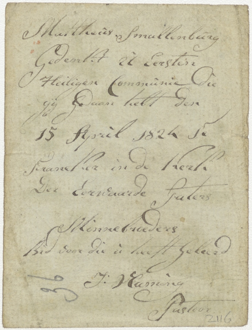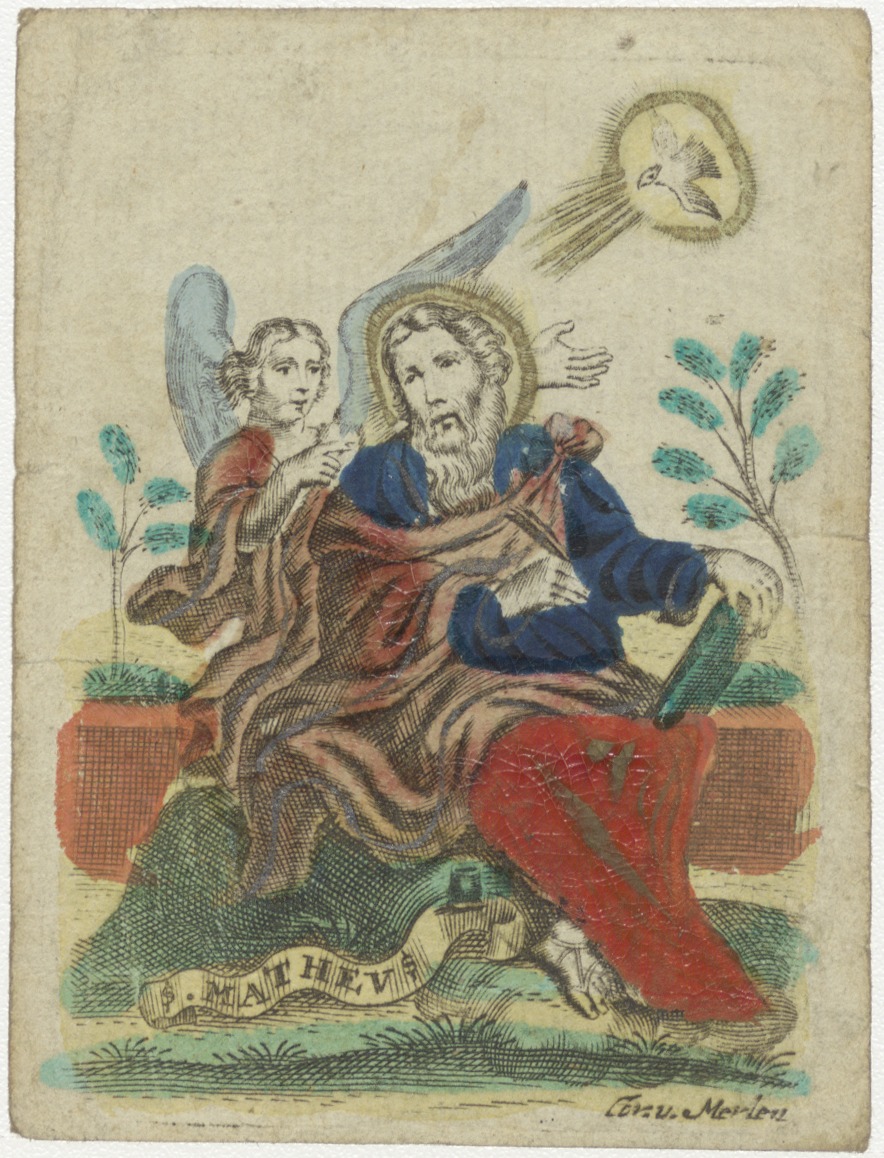 H. Mattheus evangelist, ingekleurd, kz. H. Communie Smullenberg;1824;Franeker;paters Minnebroeders
