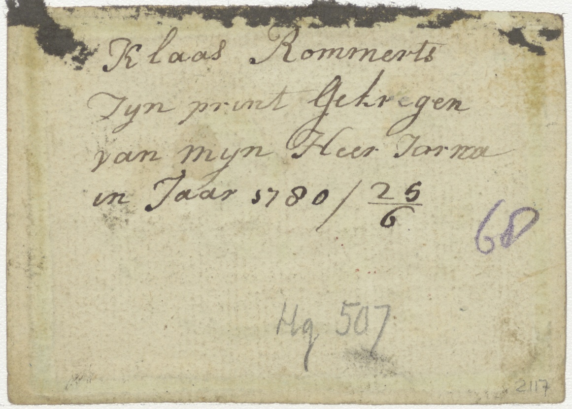 Maria met Christuskind op een wagen door engelen getrokken, ingekleurd, kz. Klaas Rommerts zijn print gekregen van mijn heer Jorna;1780