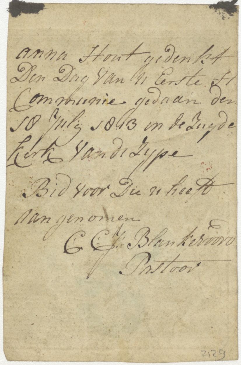 Maria Onbevlekte Ontvangenis, ingekleurd, kz. H. Communie Anna Hout;1813