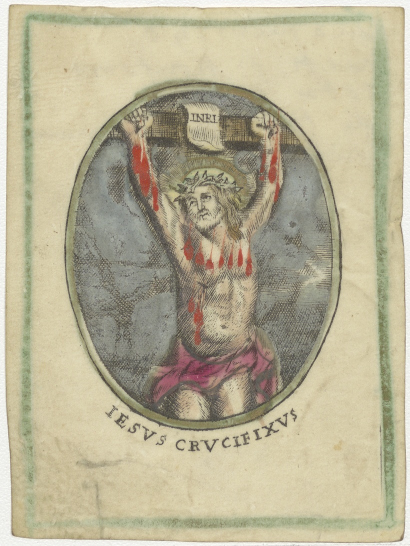 Christus gekruisigd, ingekleurd, kz. H. Communie Coba Blom;1790