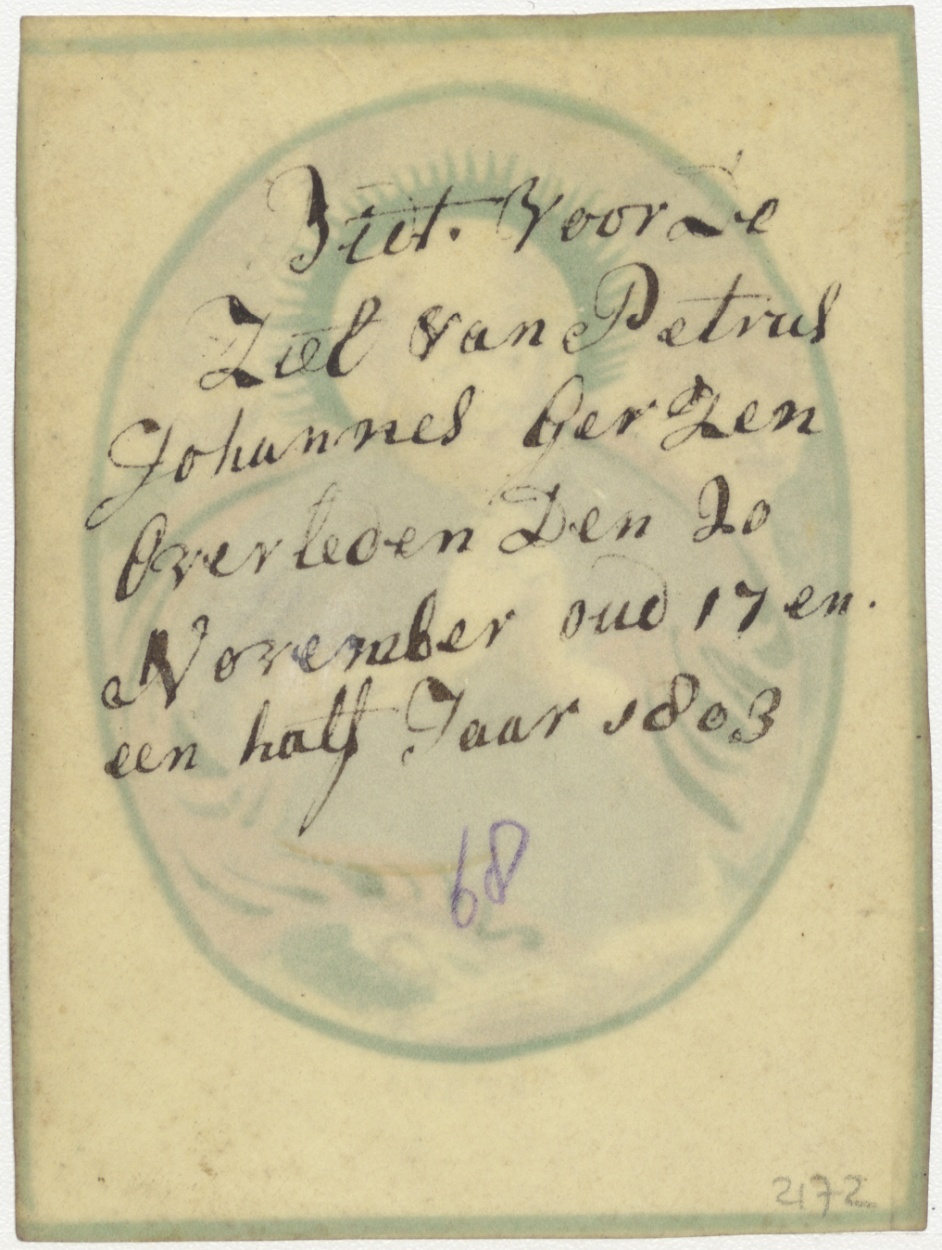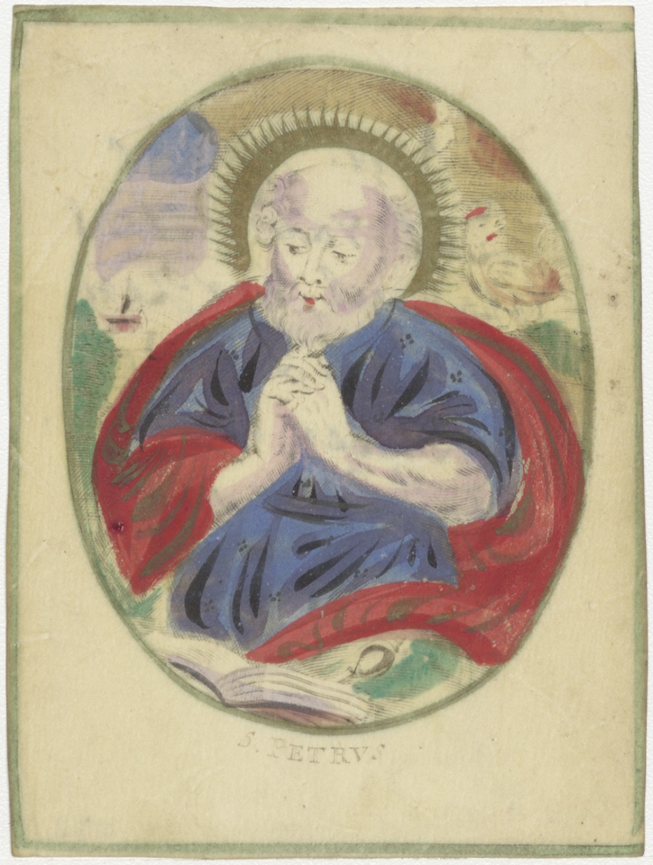 H. Petrus, ingekleurd, kz. Bid voor ziel Petrus Joannes Gerzon (+1803)