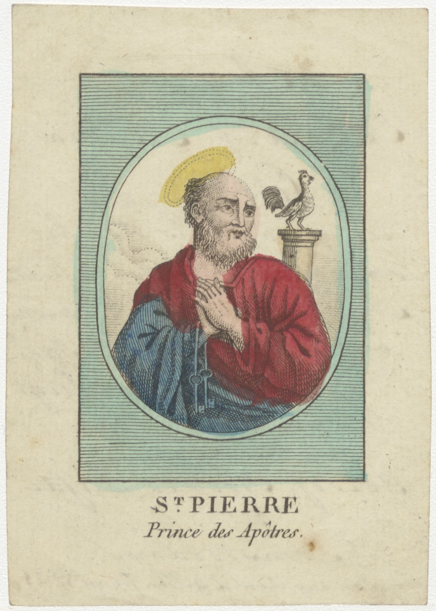 H. Petrus, ingekleurd, kz. Elizabeth Maria Graes ter gedagtenis van het opzeggen van den kleinen Mechelschen Catechismus