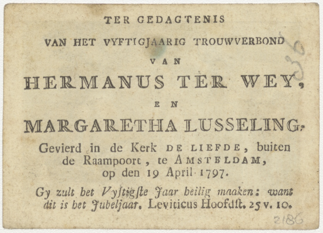 De ladder van Jacob, ingekleurd, kz. vijftig-jarig huwelijk Ter Wey-Lusseling;1797