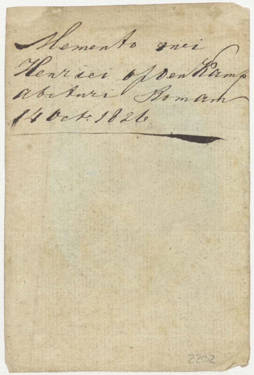 H. Stanislaus de Kostka, S.J., ingekleurd, kz. Memento mei Henrici op den Kamp;Absturi Romam;1826