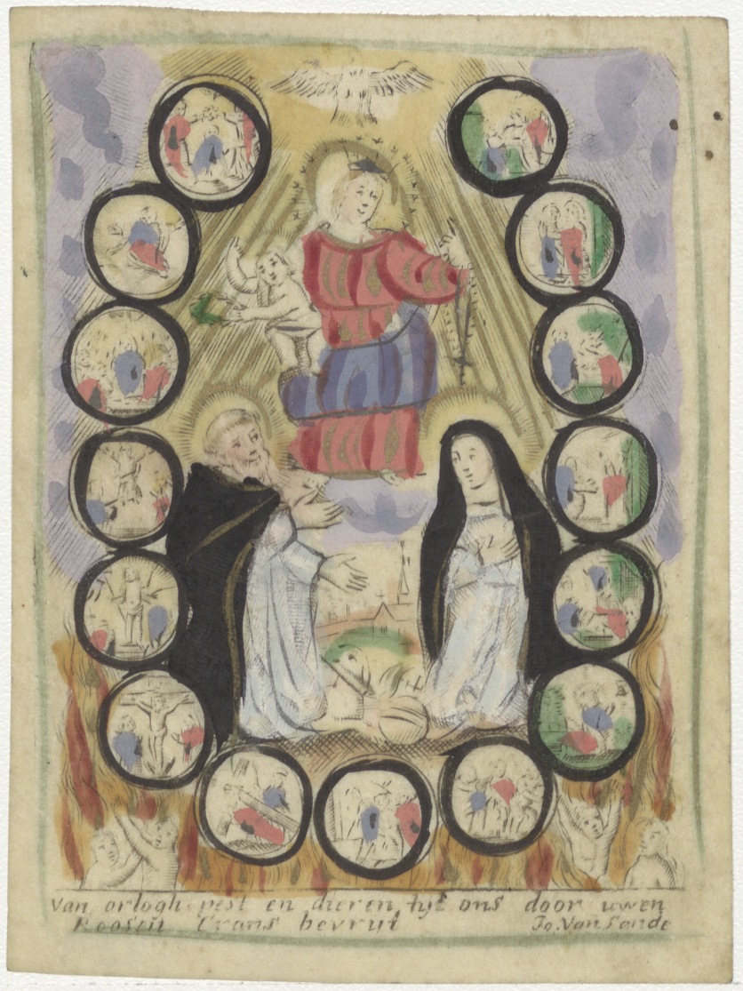 O.L. Vrouw van de Rozenkrans met St. Dominicus, ingekleurd