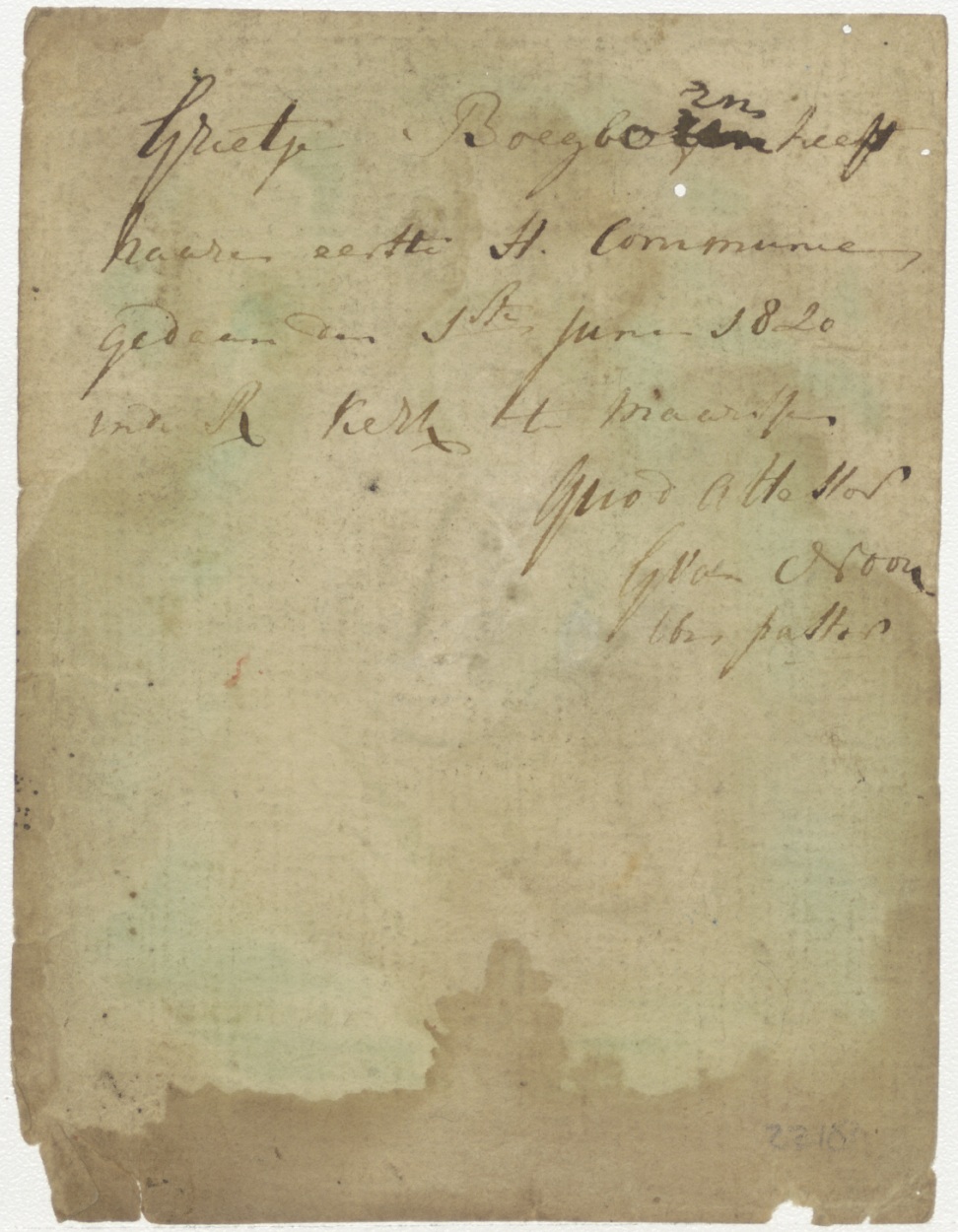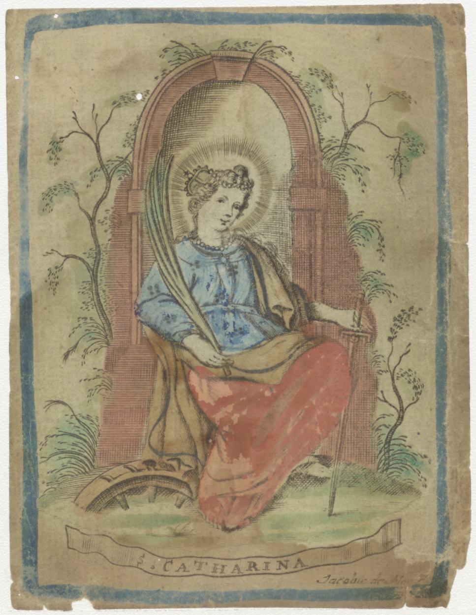 H. Catharina van Alexandrië, ingekleurd, kz. H. Communie Grietje Bijborn(?);1820