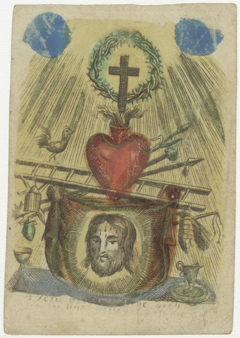 H. Hart met lijdenswerktuigen en doek van Veronica, ingekleurd