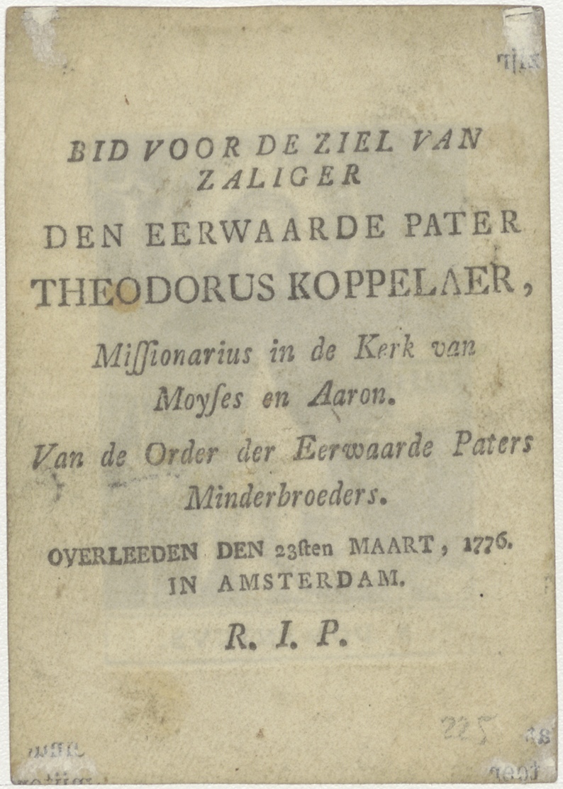 H. Dominicus, kz. Bid voor ziel Theodorus Koppelaer (+1776);Pastoor;Amsterdam