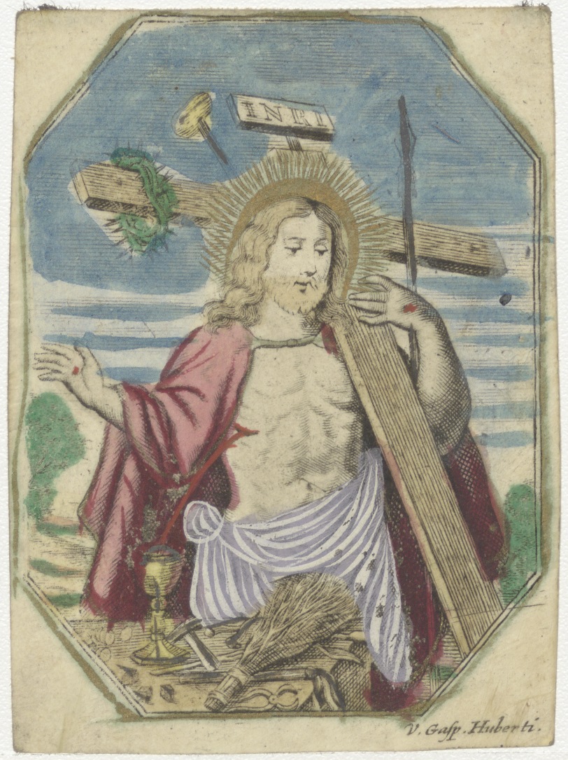 Christus met het kruis en lijdenswerktuigen, ingekleurd