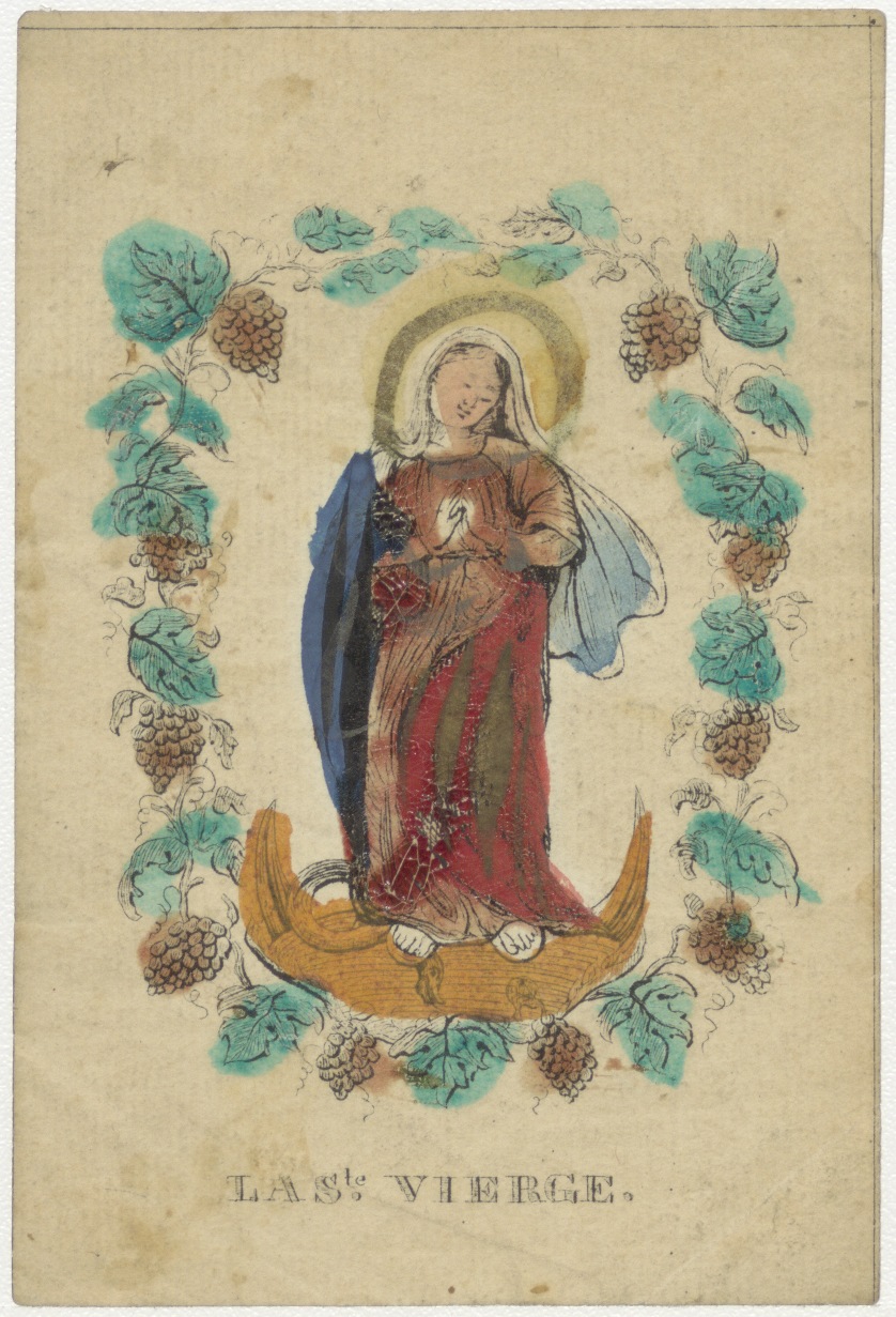 Onbevlekte Ontvangenis (Maria staande op halve maan en slang vertredend), ingekleurd