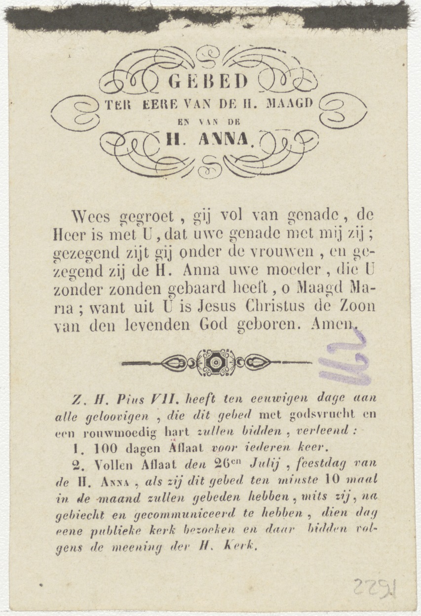 H. Anna (met Maria), ingekleurd, kz. Gebed ter ere van de H. Maagd en van H. Anna