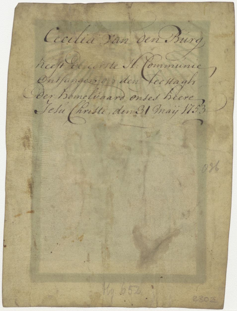 Pinksteren, ingekleurd, kz. H. Communie Van den Bierg;1753