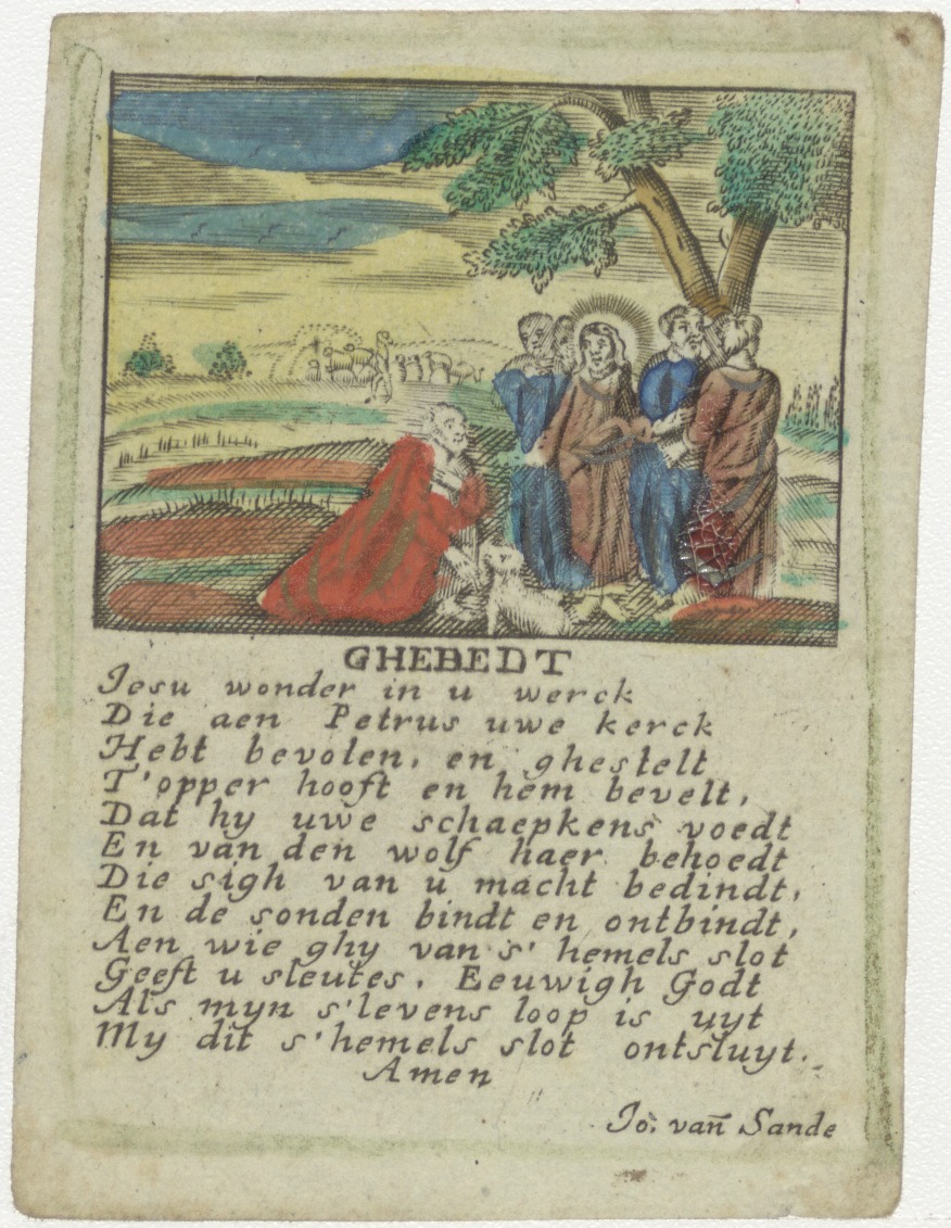 Christus zegt tot Petrus weidt mijne lammeren, ingekleurd