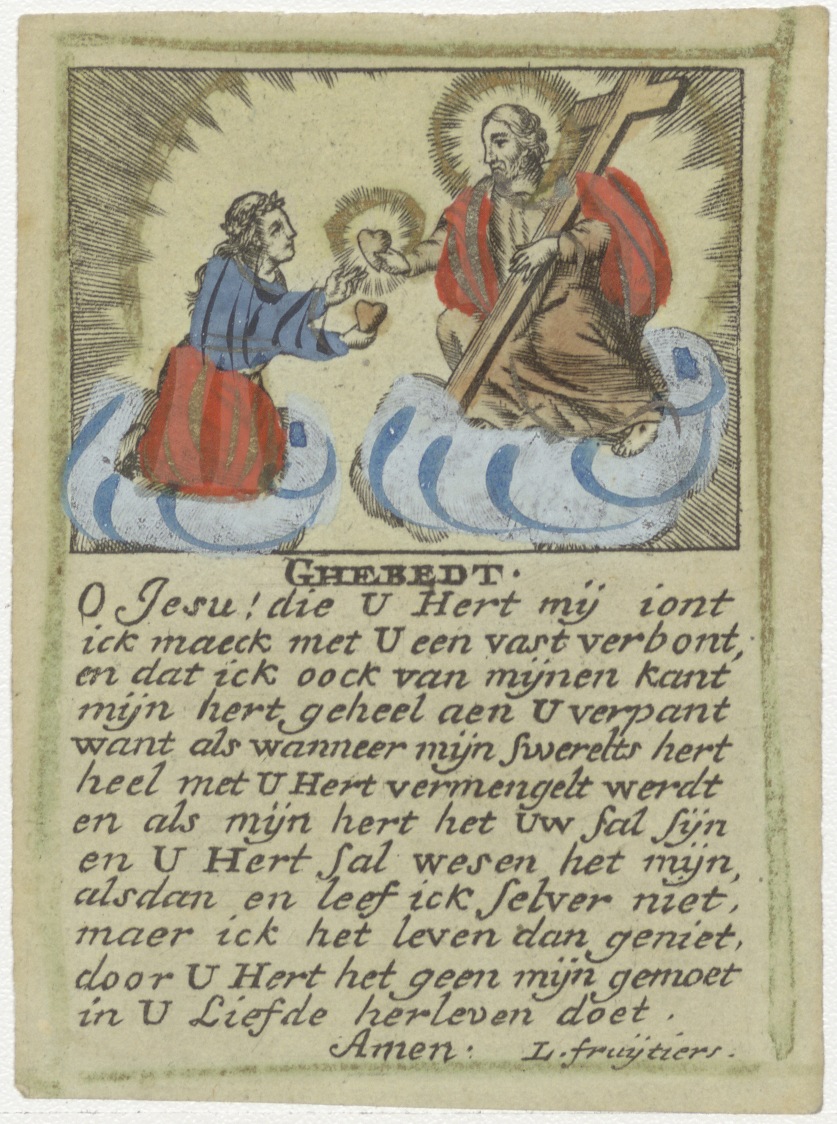 Christus geeft zijn hart aan de mensen, ingekleurd
