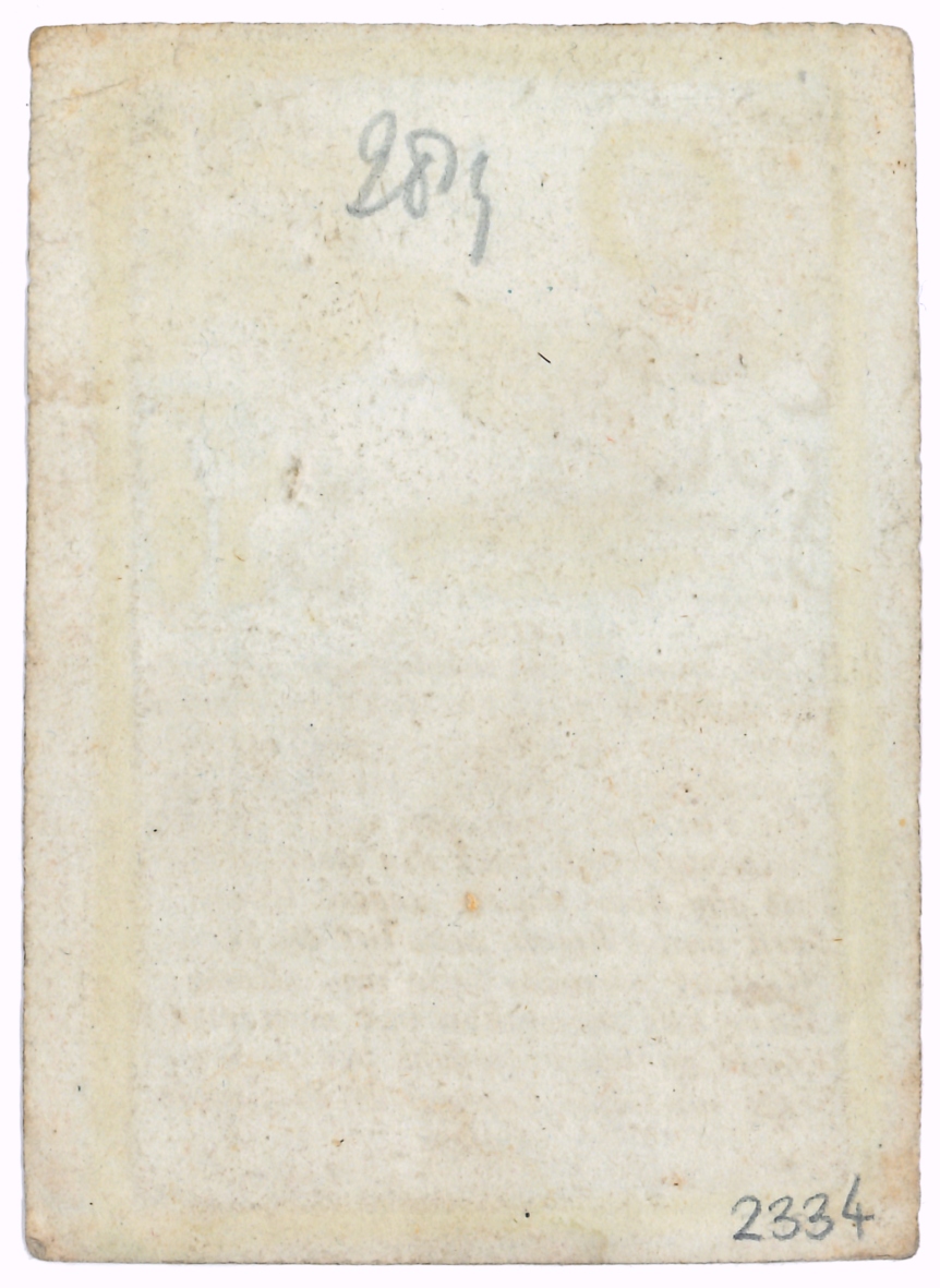 De broodvermenigvuldiging, ingekleurd, met "Ghebedt, Ick vraegh uyt uwen vollen schoot, O Godt voor ziel en lichaem broodt ..."