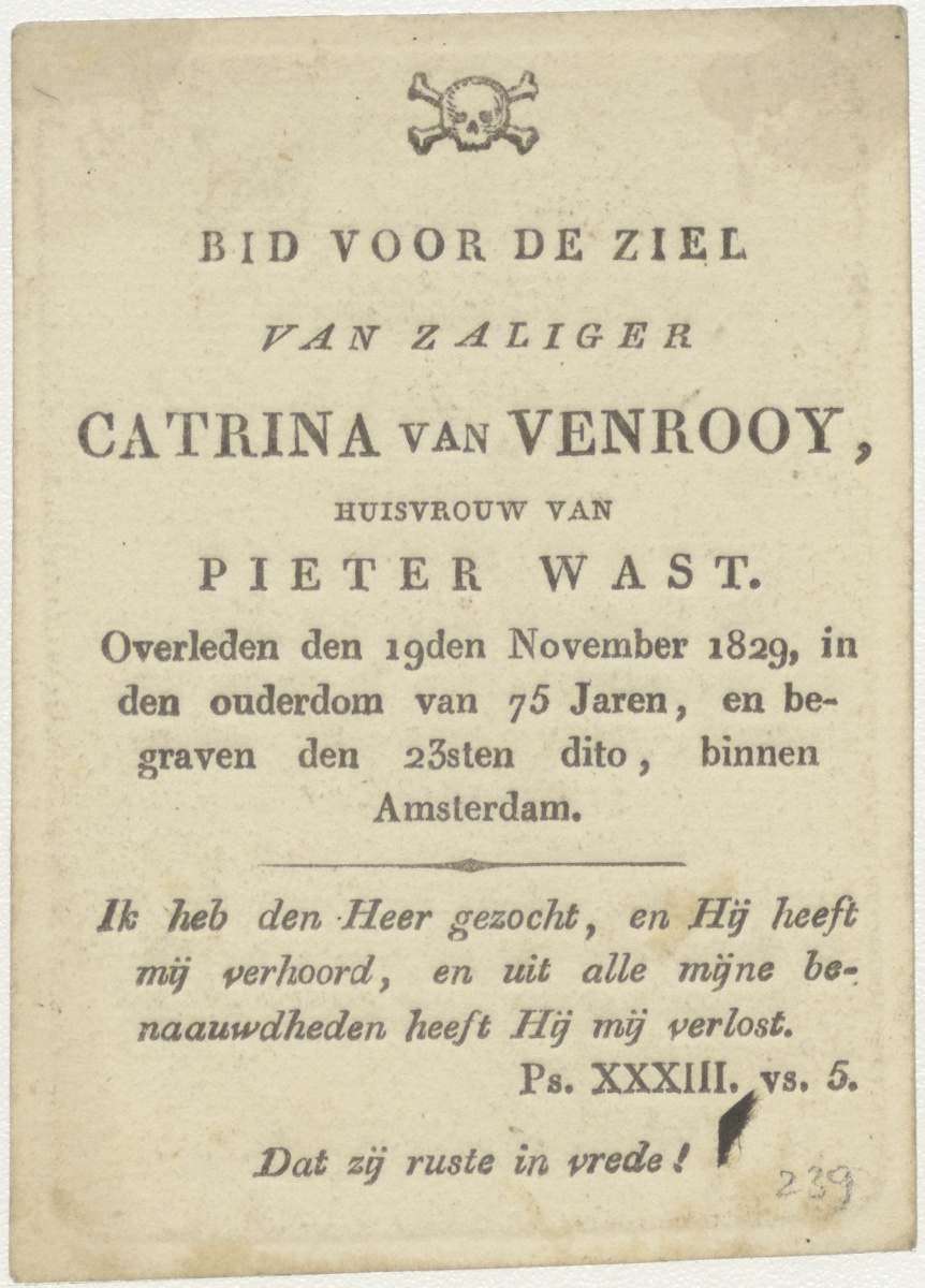 H. Theresia legt haar hand in de wond van Christus, kz. Bid voor ziel Keurooy (+1829);Amsterdam