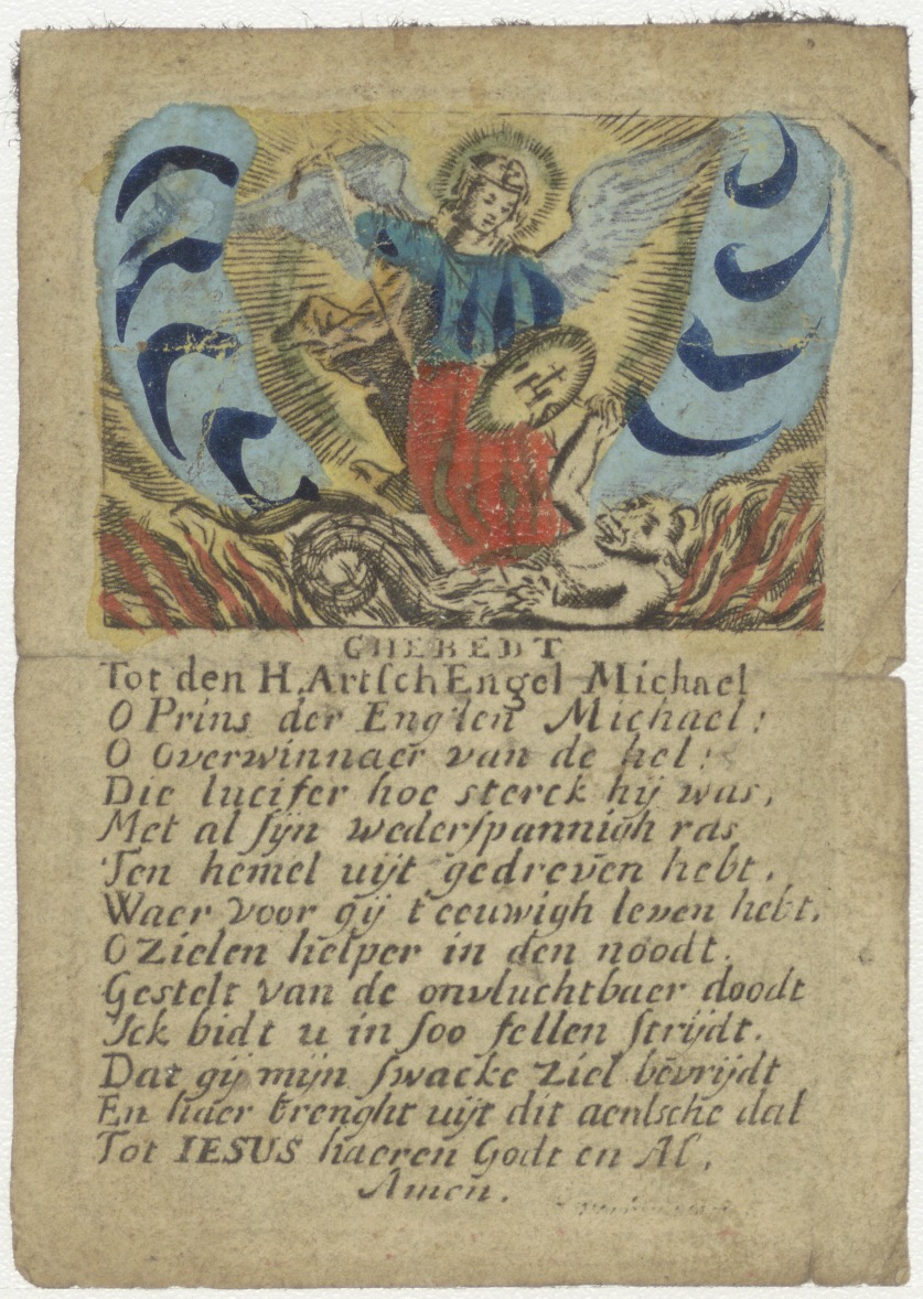 H. Aartsengel Michaël, met gebed, ingekleurd