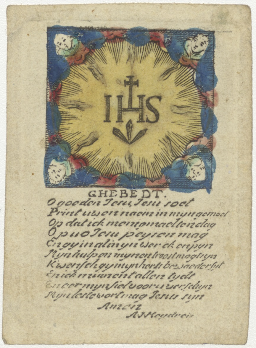Monogram IHS met 4 putti, ingekleurd