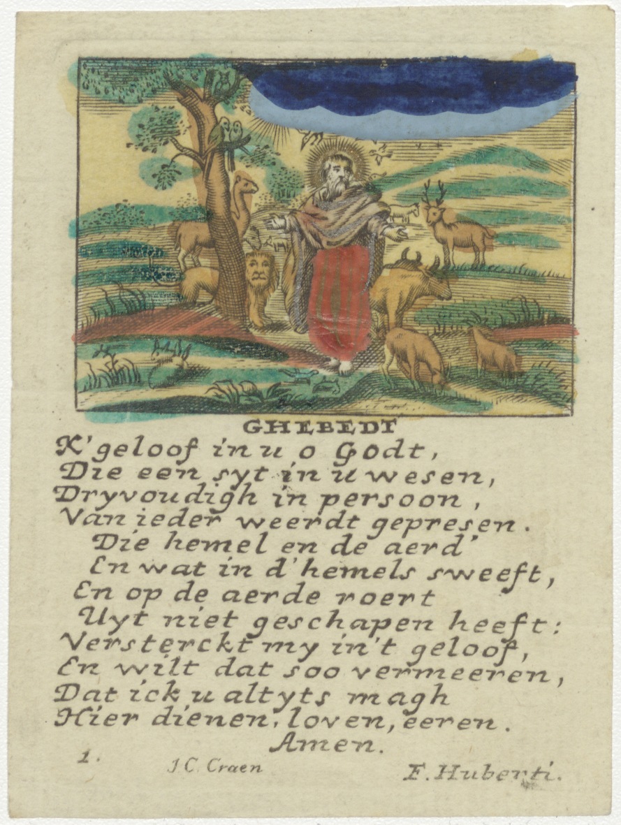 God, schepper van hemel en aarde, ingekleurd