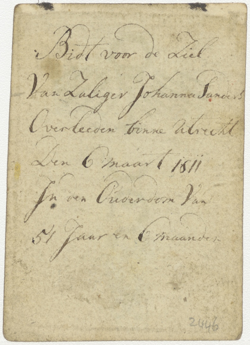 Aflaatgebed Gregorius XV, ingekleurd, kz. Bid voor ziel Sanders (+1811);Utrecht