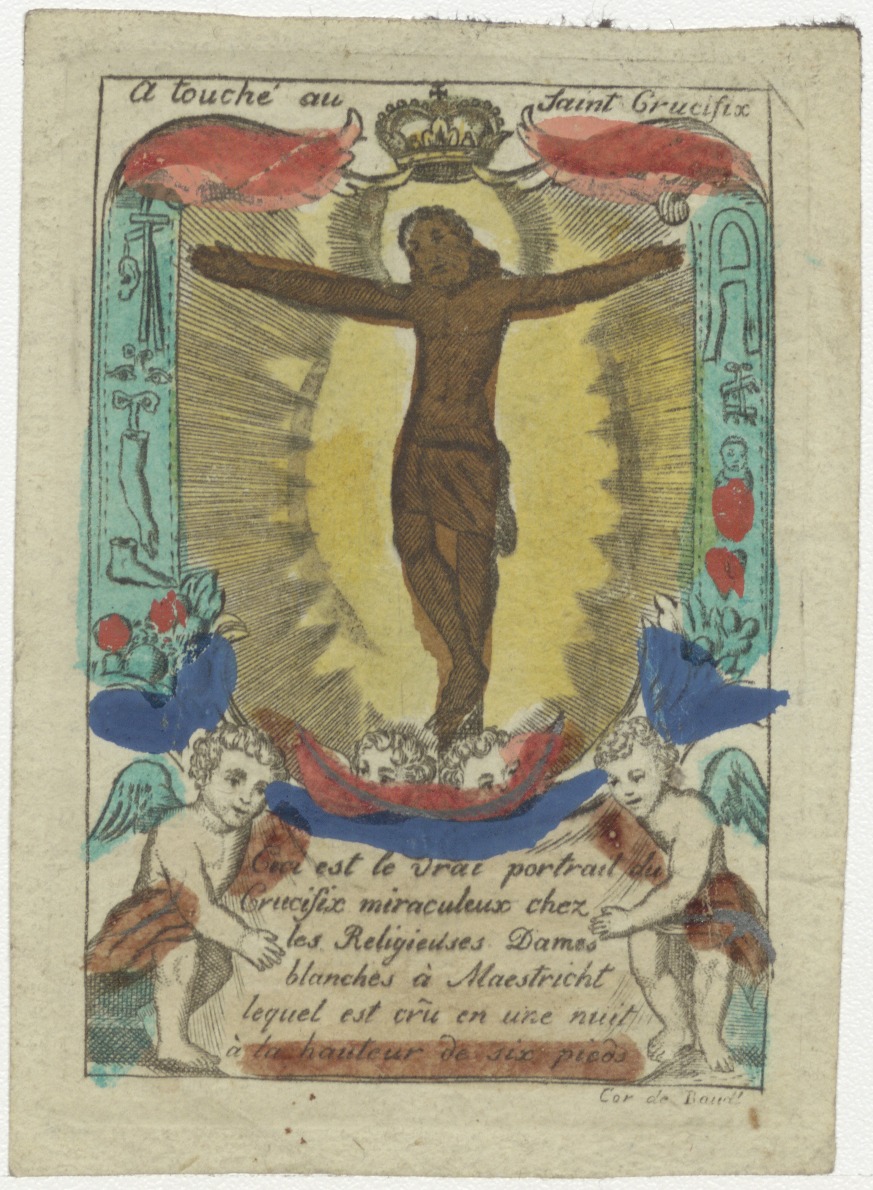 Wyck Maastricht, Afbeeldsel van 't crucifix (kruis), ingekleurd