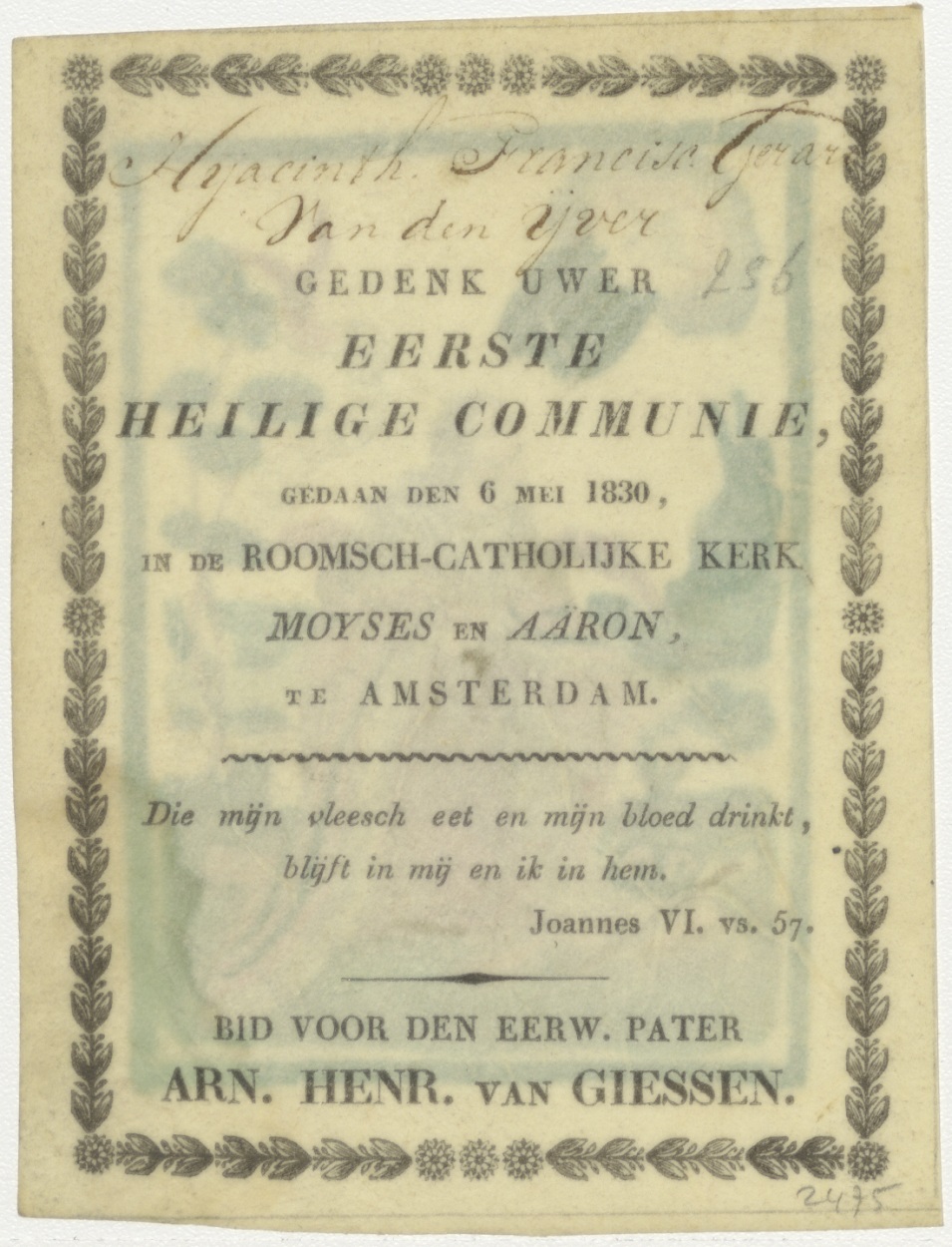 H. Lodewijk IX van Frankrijk, ingekleurd, kz. H. Communie Van den IJver;1830;Moyses en Aäronkerk