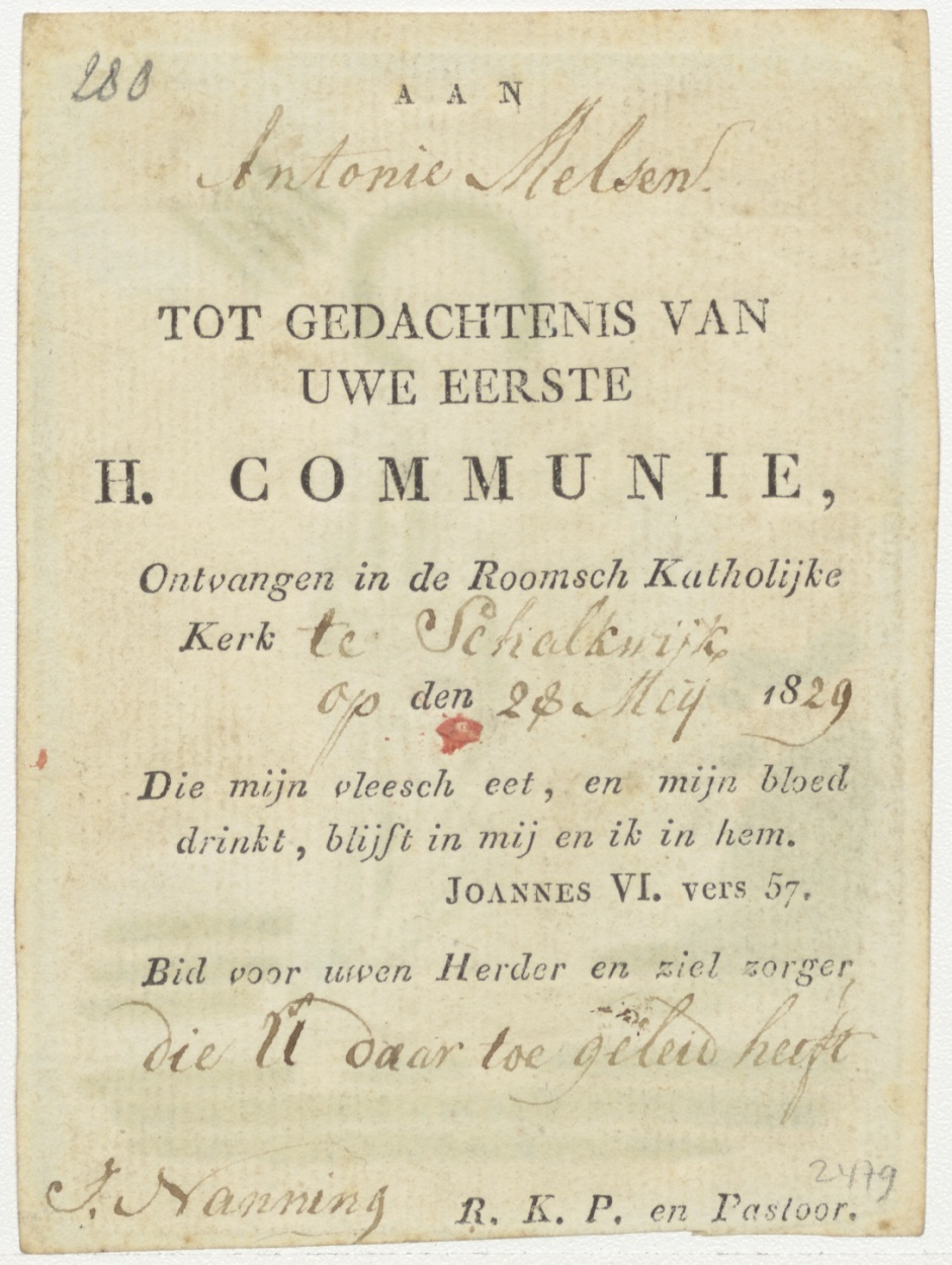 H. Paulus, kz. H. Communie Antonie Melsen;1829;Schalkwijk