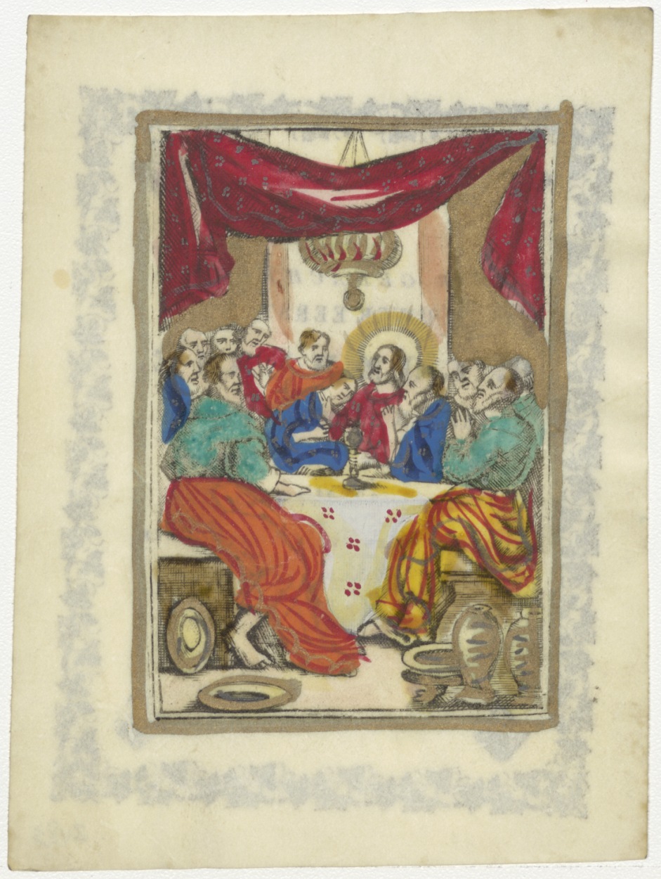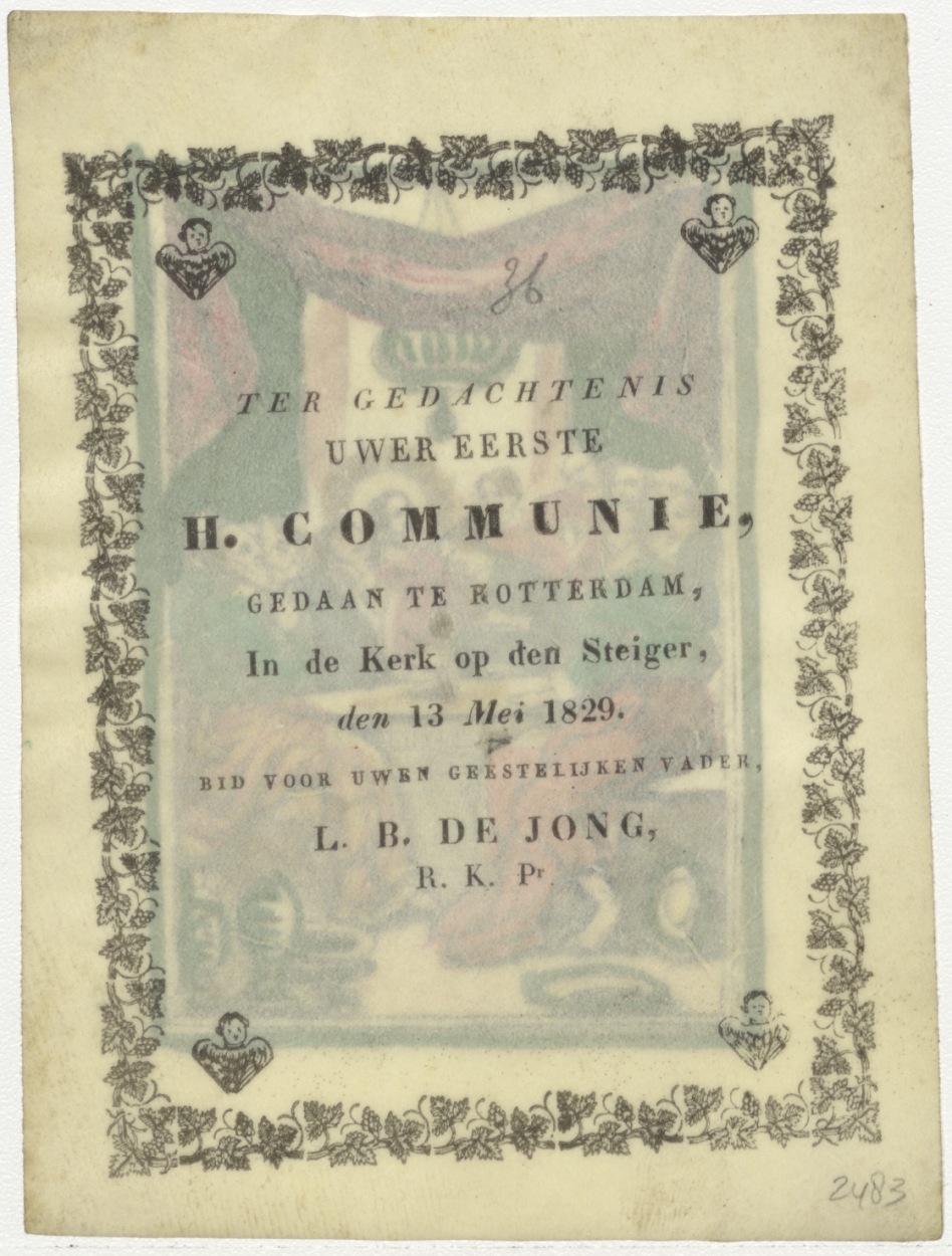 Laatste Avondmaal, ingekleurd, kz. H. Communie;1829;Rotterdam;Bid voor uwen geestelijke L.H. de Jong