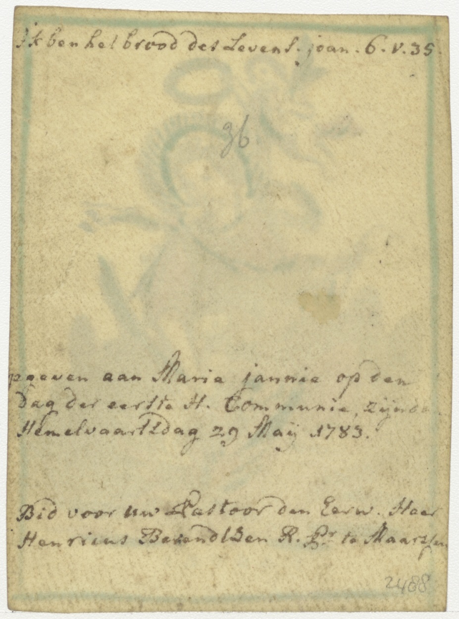 H. Agnes, ingekleurd, kz. H. Communie Maria Jannie (1783);Maarssen