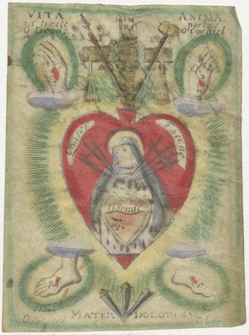 Maria, Mater Dolorosa met de lijdensattributen, ingekleurd