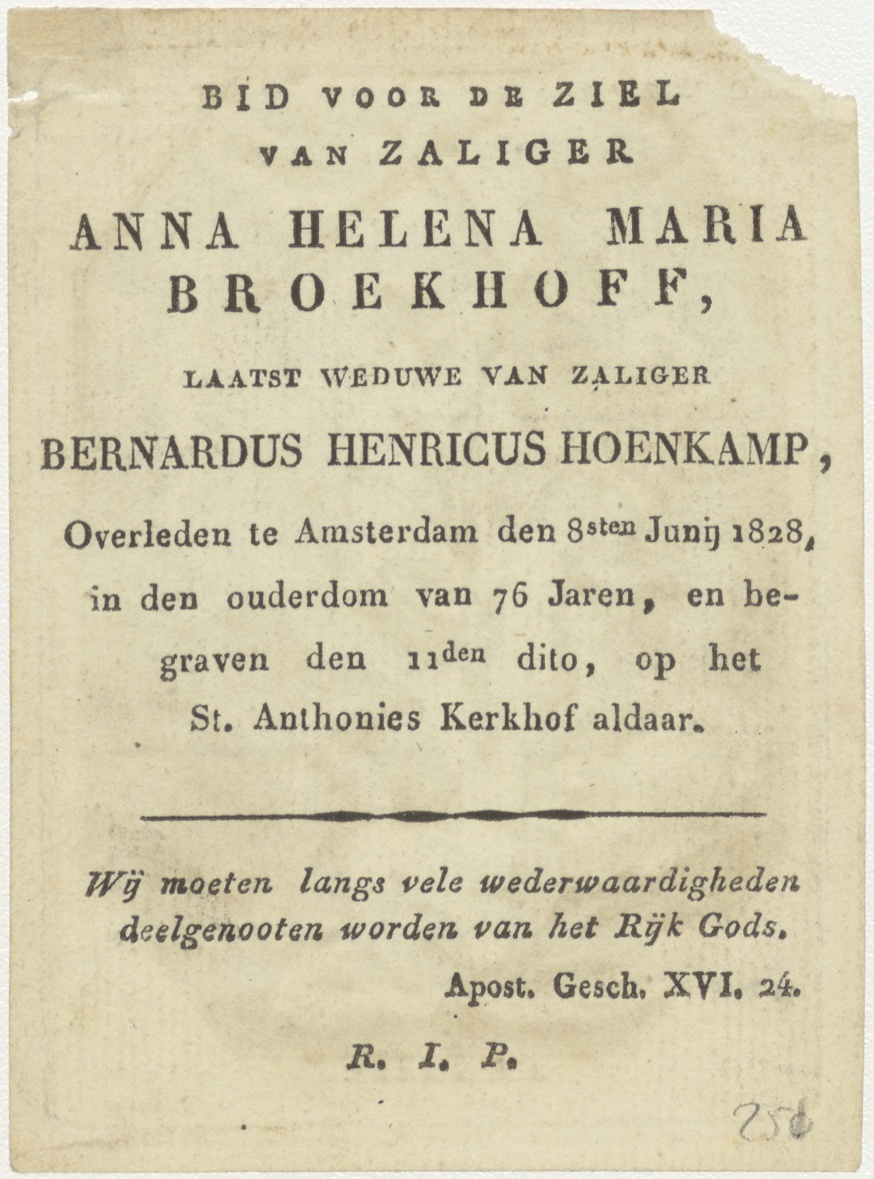 H. Michael, kz. Bid voor ziel Broekhoff (+1828);Amsterdam