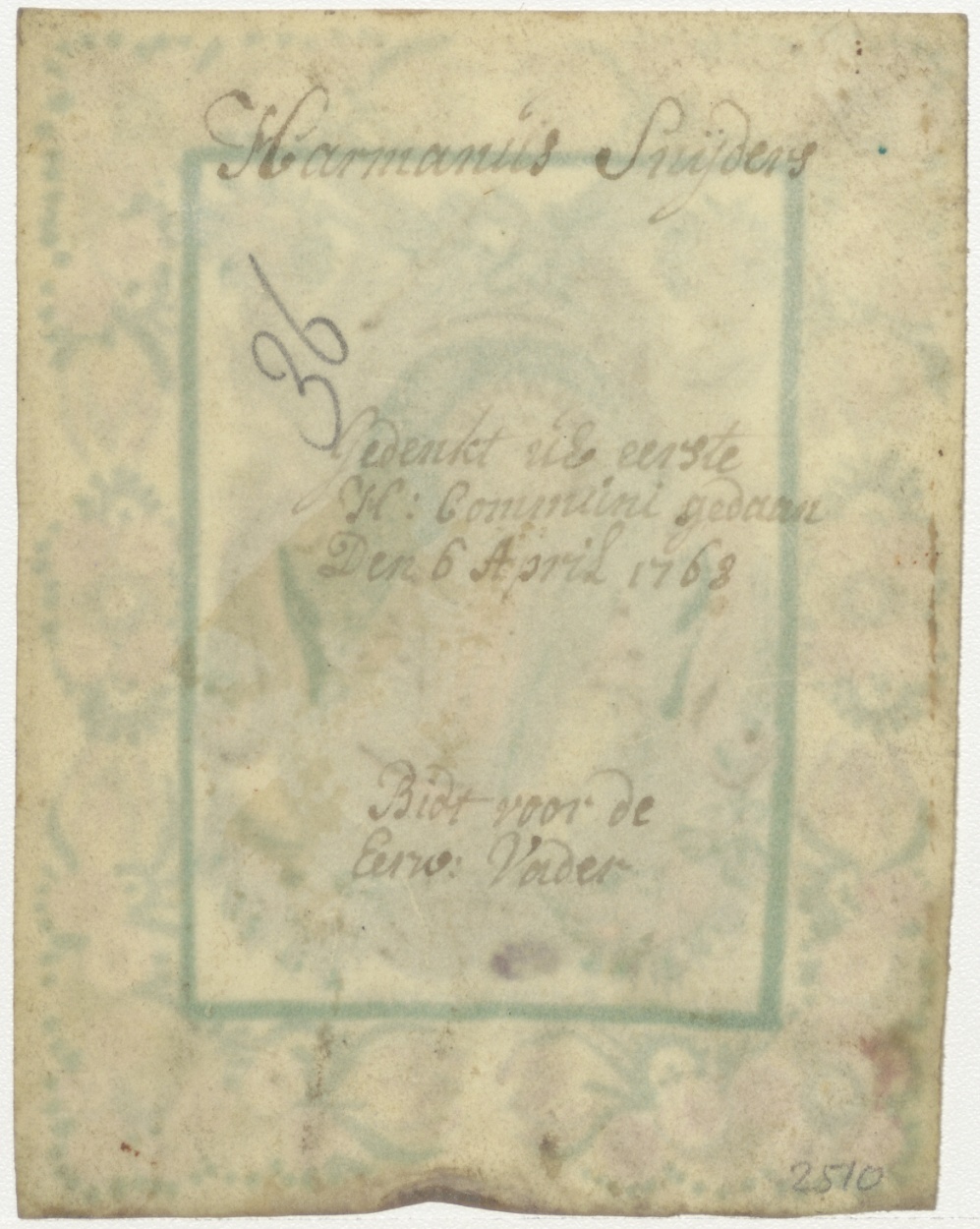 H. Stephanus, ingekleurd, kz. H. Communie Snijders;1768