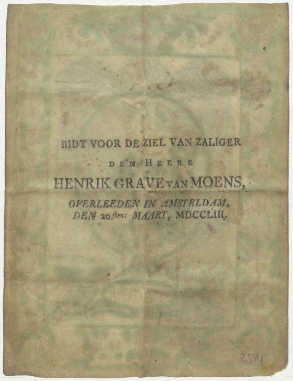 H. Elisabeth, ingekleurd, kz. Bid voor ziel Henrik Grave van Moens (+1753) Amsterdam