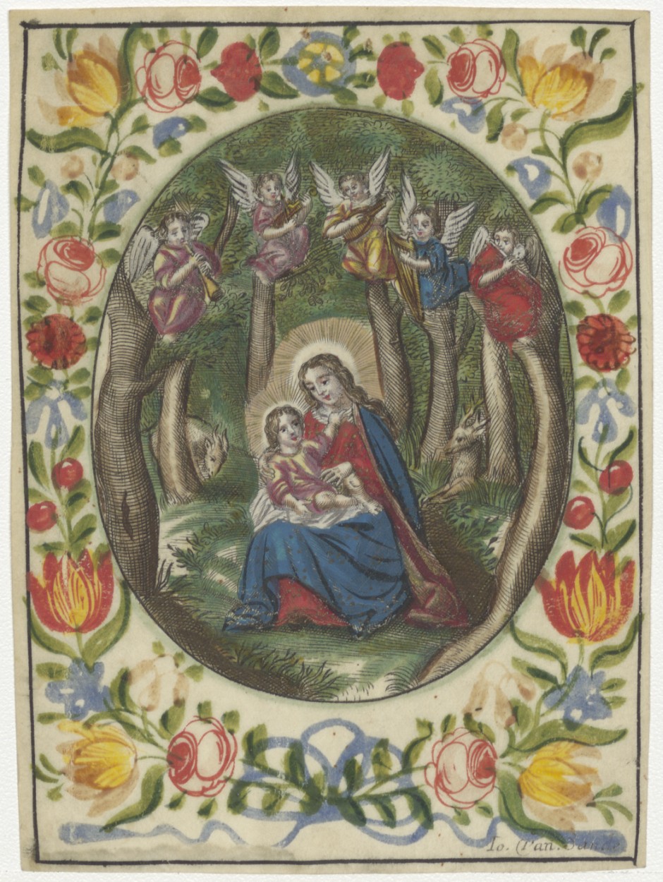 Maria met engelen, ingekleurd
