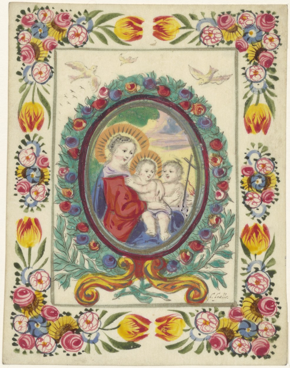Maria met kind en Johannes de Doper, ingekleurd, kz. Booyen