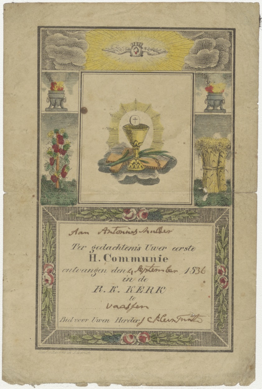 H. Sacrament, ingekleurd, kz. H. Communie Mulder;1836
