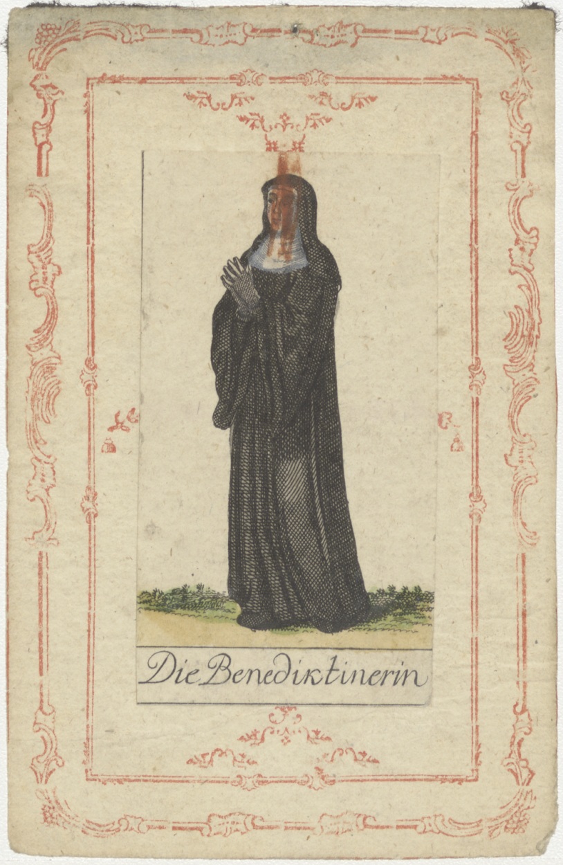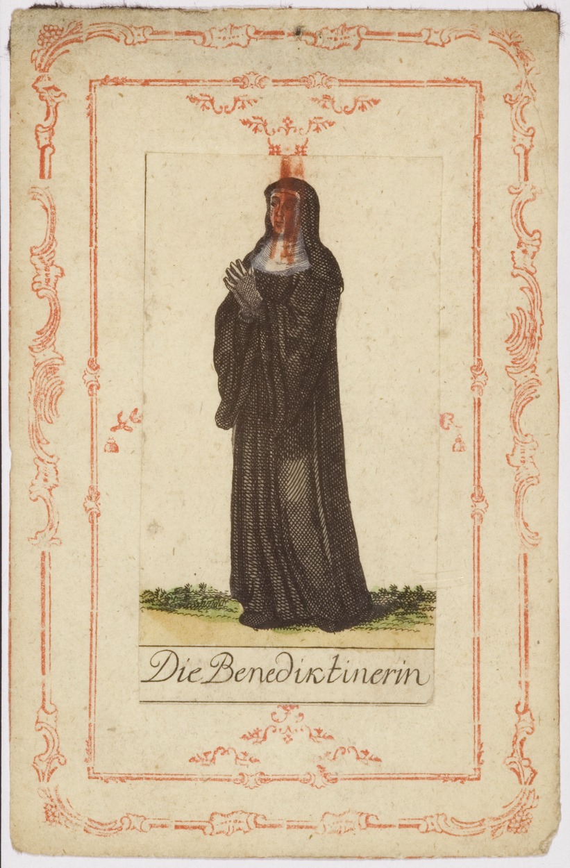 Serie kostuums religieuze ordes: Benedictines non, ingekleurd